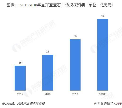 受益于LED行業(yè)和消費電子行業(yè)巨大需求,藍寶石材料需求量持續快速增加,全球藍寶石市場(chǎng)規模將繼續擴大。2017年,全球藍寶石行業(yè)市場(chǎng)規模達到33億美元,同比43.48%,預計2018年市場(chǎng)規模將達到46億美元。